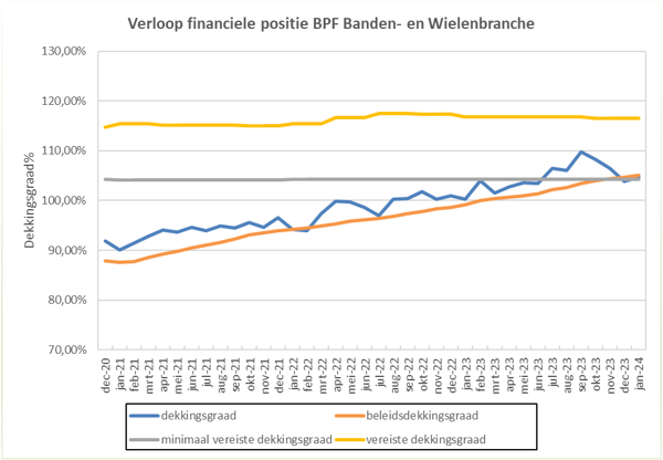 De beleidsdekkingsgraad is een gemiddelde van de actuele dekkingsgraden in de afgelopen 12 maanden. De financiële ontwikkeling over het afgelopen jaar is daarin terug te zien. De beleidsdekkingsgraad ging in januari omhoog naar 105,1%.