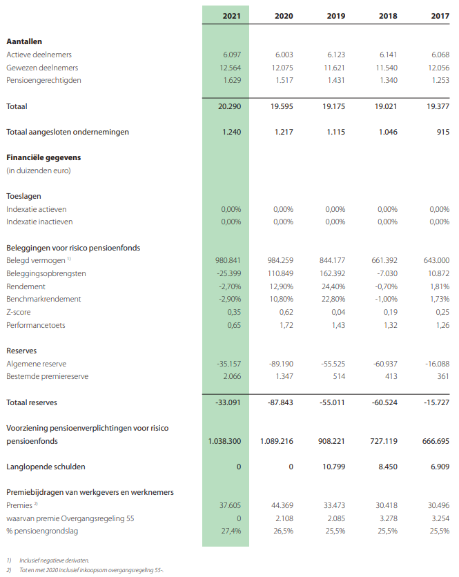 Op deze pagina vindt u de relevante bedragen en percentages die per 1 januari 2023 gelden voor onze pensioenregeling. U ziet hier ook een overzicht van onze kerncijfers, afkomstig uit ons jaarverslag. Met behulp van deze cijfers krijgt u snel een beeld van ons pensioenfonds. het volledige jaarverslag leest u hier.