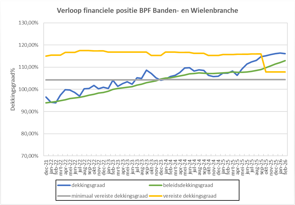 De financiële positie van Bpf Banden en Wielen is al langere tijd niet sterk. Onze beleidsdekkingsgraad ligt onder de vereiste dekkingsgraad. Daarom heeft ons pensioenfonds een herstelplan ingediend bij De Nederlandsche Bank (DNB). Volgens dit herstelplan lukt het ons om binnen 12 jaar financieel te herstellen. Zolang onze financiële positie niet voldoende is, moeten we het herstelplan elk jaar aanpassen en opnieuw indienen bij DNB. Lees hier meer over het herstelplan